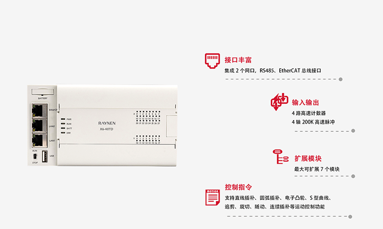 插補等(deng)強大(da)的(de)運動(dòng)控製(zhi)功能(néng)
